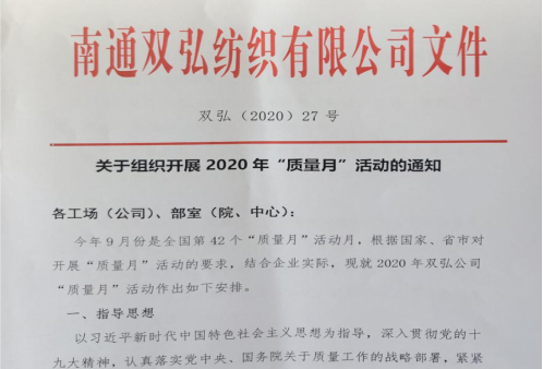 ในพิธีเปิดตัวเลขานุการคณะกรรมการพรรคของ บริษัท และประธาน Ji Yijun ได้เผยแพร่เอกสารของ บริษัท ของ Double Great (2020) หมายเลข 27 "เดือน" ที่มีคุณภาพ "อธิบายถึงอุดมการณ์นำทางการกำหนดรูปแบบของกิจกรรมรวบรวมแผนกิจกรรมการฝึกอบรมและการฝึกฝน การเปิดตัวและการประเมินกิจกรรมและชี้แจงแผนกผู้รับผิดชอบเฉพาะและเวลาเสร็จสิ้นของแต่ละงาน เขาชี้ให้เห็นว่า บริษัท ควรนำรูปแบบต่าง ๆ มาใช้และเผยแพร่อย่างกว้างขวางเพื่อสร้างบรรยากาศที่ดีของ "ไม่ว่าคุณภาพจะเล็กแค่ไหนมันเป็นเรื่องใหญ่" และ "ทุกคนรับผิดชอบคุณภาพ"; เพื่อดำเนินการตามข้อกำหนดของกิจกรรมอย่างเต็มที่ทุกแผนกควรให้ความสำคัญกับการดำเนินการตามความรับผิดชอบ ในการใช้ "เดือนที่มีคุณภาพ" เป็นโอกาสให้มุ่งเน้นไปที่จิตวิญญาณของเอกสารหมายเลข 1 ของ บริษัท อย่างใกล้ชิดใช้โครงการสำคัญห้าโครงการปรับปรุงกลไกการควบคุมคุณภาพระยะยาวอย่างลึกซึ้งและครอบคลุมการจัดการคุณภาพอย่างกว้างขวางแนะนำพนักงานทุกคนกระบวนการทั้งหมดและการพัฒนาคุณภาพที่ดีต่อการพัฒนา