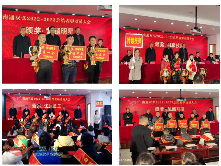 ความขยันหมั่นเพียรทำให้ต้นฤดูใบไม้ผลิและถึงเวลาที่ต้องก้าวไปข้างหน้า เมื่อวันที่ 8 กุมภาพันธ์ บริษัท Nantong Double Great ได้จัดประชุมที่ยิ่งใหญ่เพื่อสรุปและยกย่องปี 2565 และระดมผลงานในปี 2566 กลุ่มผู้สูงอายุที่ได้รับการยกย่องกลุ่มบุคคลขั้นสูงดาราการตลาดกลุ่มผู้ชนะรางวัล QC